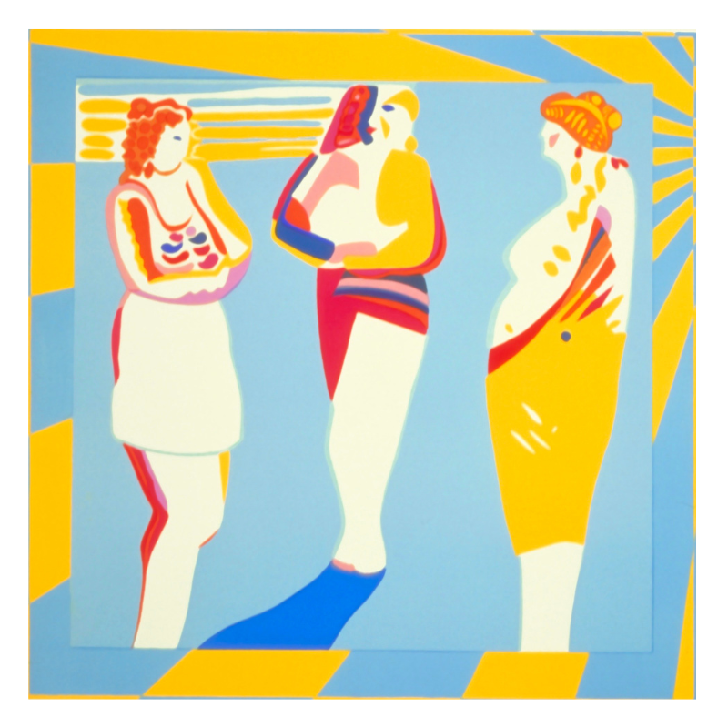 These images are drawn from a journal entry made during Cecile Elstein’s Mandarah II Bursary Scheme (1984–85). They reflect a moment of quiet observation: three women in conversation, seen at different times throughout a single day. As the artist passed by in the morning, at noon, and again in the evening, the women remained, still talking, still together. What changed was the light. The sun’s movement across the sky altered how they appeared, casting new shadows, shifting tones, and subtly transforming the scene. This sequence of images captures not just the women, but also the passage of time and the communion between people and the natural world.