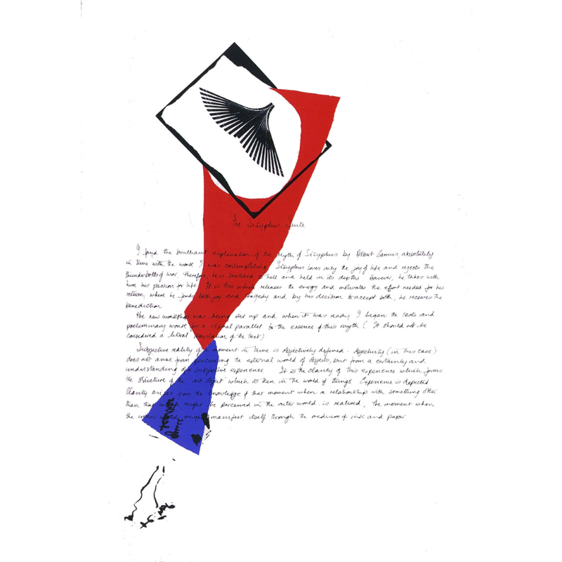 “I found the brilliant explanation of the Myth of Sisyphus by Albert Camus absolutely in tune with the work I was contemplating... It is the clarity of this experience which forms the structure of the 'art object' which is then in the world of things. Experience is depicted. Clarity arises from the knowledge of that moment when a relationship with something other than that which might be perceived in the outer world is realised — the moment when the inner world might manifest itself through the medium of ink and paper.”