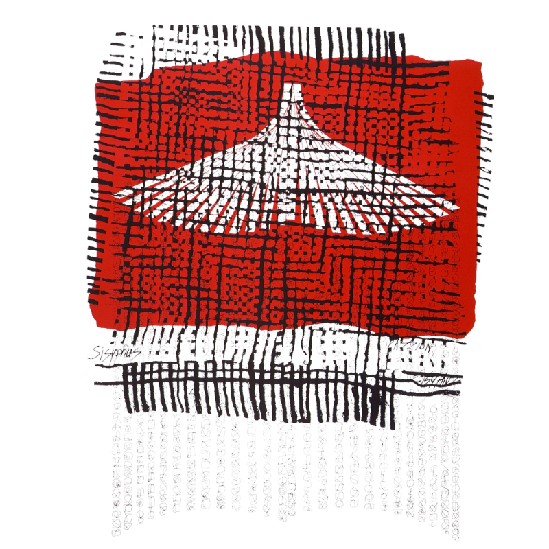 Elstein, in response to Albert Camus’s 1942 philosophical essay The Myth of Sisyphus, created The Sisyphus Suite (1978–80), a series of eight screenprints. Each print was made using screenprint on Arches paper, in an edition of 30, measuring 106 x 78 cm.
